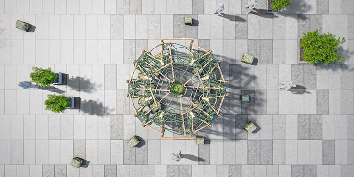 Павилионът предлага биотехнологично решение за градско пречистване на въздуха чрез фотобиореактори с микроводорасли, които са десет пъти по-ефективни от сухоземните растения. Модулната дървена структура със стъклен резервоар драстично намалява замърсяването, насищайки средата с кислород. Този преместваем елемент създава иновативна зона за рекреация и популяризира бъдещето на устойчивата архитектура.