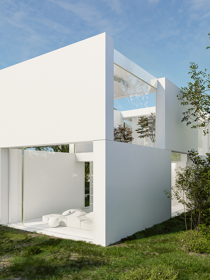 Domino House е минималистична еднофамилна къща, разположена в ограничен столичен имот. Шахматната фасада и дневната с двойна височина компенсират малкия мащаб, създавайки силна пространствена идентичност. Изцяло белият интериор и стъклените повърхности размиват границите, внасяйки светлина, футуристично спокойствие и усещане за простор.