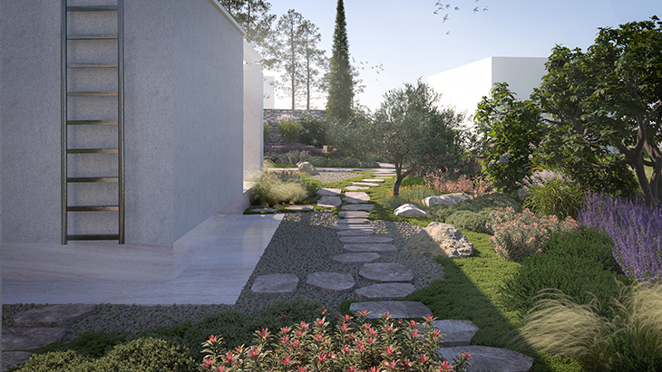 Проектът е разработен с цел създаване на градина със средиземноморски характер, базирана на използването на естествени материали и растителни видове, които се вписват успешно в местния и естествен ландшафт. Концепцията се фокусира върху устойчивост, естетически принципи на натуралистичния дизайн и създаване на добре обмислено и функционално пространство.