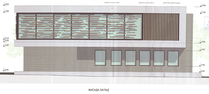 Визията на сградата включва праволинейни форми и геометрична яснота, които подчертават функционалния характер на обекта. Комбинацията от тъмни фасадни елементи и светли хоризонтални акценти създава усещане за динамика и контраст, като едновременно с това придава елегантност на сградата, казва проектантът. Използването на декоративни панели върху горния етаж, които съчетават дървени и метални елементи, добавя естетически акцент и подсилва идентичността на обекта. Тези панели служат не само като декоративен елемент, но и осигуряват частична сянка и визуална текстура.