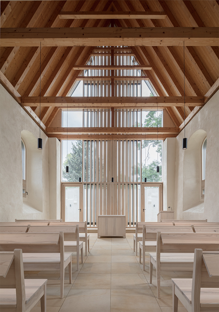 Силно повредена селска църква е превърната в нов социален център чрез реконструкция и целенасочени интервенции. Дизайнът съчетава внимателното запазване на историческата структура с ясно дефинирани съвременни допълнения, създавайки отворено пространство за срещи. Вътрешните и външните пространства се сливат хармонично, придавайки на обекта нова идентичност. Журито определи обекта като „съчетание от исторически и модерни елементи“ и „убедителна преинтерпретация на съществуващата структура“.