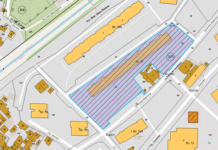 Проектът обхваща терен между ул. “Баталова воденица“ и блокове 17, 18А и 19 в имот с идентификатор 68134.305.50.