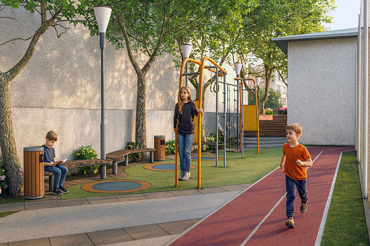 Проектът предвижда изграждане на комбинирано спортно игрище с осветление, писта за бягане, нови ударопоглъщащи настилки, оформяне на зелени площи със запазване на съществуващата растителност и зони за отдих, както и създаване на пространство за занятия на открито. В двора ще бъдат разположени и фитнес уреди и маси за тенис. „Целта ни е да превърнем съществуващото пространство в модерна, безопасна и зелена среда, която да отговаря на нуждите на децата и на училищната общност“, коментира кметът на района Станислав Илиев.