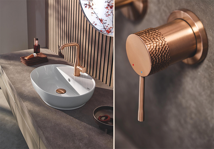 Серията GROHE Essence от години е ключов играч в сегмента на т.нар. „достъпен лукс“ – решения, които комбинират премиум усещане, надеждна технология и разумен бюджет. Crafted Lever надгражда този подход, като добавя още един важен елемент - персонализацията. Новата ръкохватка предлага тактилна текстура, вдъхновена от традиционни техники на майсторска изработка, интерпретирани през езика на съвременния минимализъм. Тя се предлага в три издръжливи покрития: Chrome, Cool Sunrise и Warm Sunset, и в няколко размера и варианта за различните точки на водочерпене, което позволява цялостно, но индивидуално оформление на банята според архитектурната и интериорната концепция.