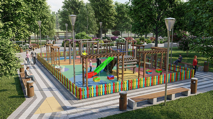 "Детският парк" на улица "Одрин" 91 до булевард "Инж. Иван Иванов" и улица "Пиротска" близо до храм "Св. Константин и Елена" в район „Възраждане“ в столицата ще включва детски съоръжения, зони за отдих с пейки и перголи, подобрено осветление и система за видеонаблюдение, озеленяване и нови настилки, поливна система за поддържане на зелените площи и голям декоративен фонтан.