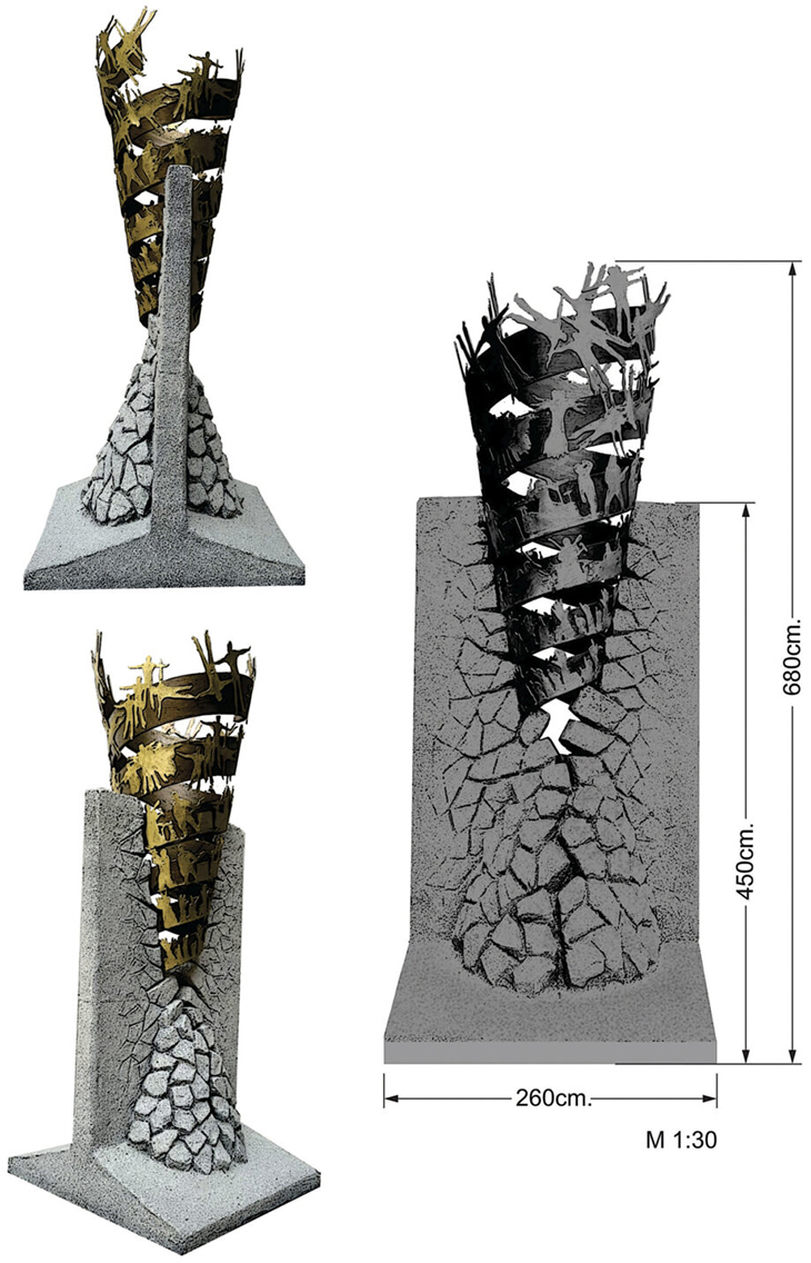 Втория елемент е конусовидно пластично тяло с отвора нагоре. В основата на композицията е публиката с високо вдигнати ръце, устремени към своите рок идоли, които са в средата на композицията и „левитират“ над тях. Движейки се във височина в своеобразен вихър, те се трансформират в групи от „летящи хора“.