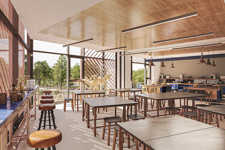 STEAM центровете ще обединяват кабинети по изобразително изкуство, музика, компютърни науки, физика, химия, биология и бит и техника. Те са свързани чрез многофункционално ядро и могат да се отварят или обединяват. Повече за проекта вижте тук.