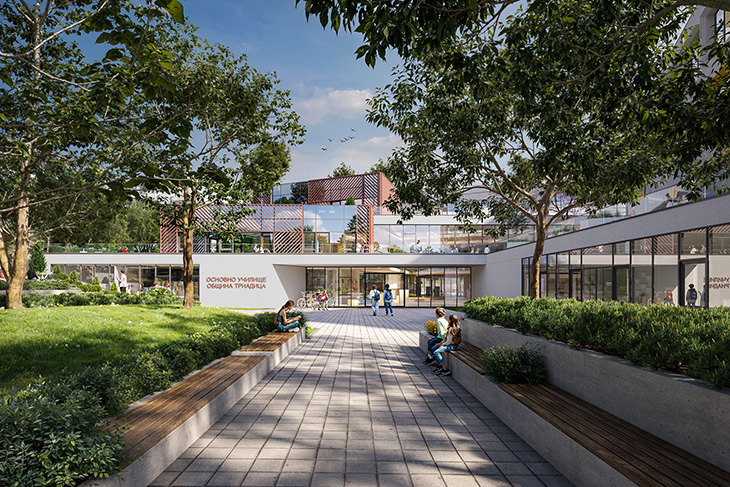Очаква се училището да има различен тип пространствено решение от стандартните стереотипни сгради. Всички класове ще имат достъп до озеленени тераси, балансът между застроената площ и дворните пространства ще е водещ, а голяма част от откритите и закрити площи ще бъдат достъпни за кварталната общност.