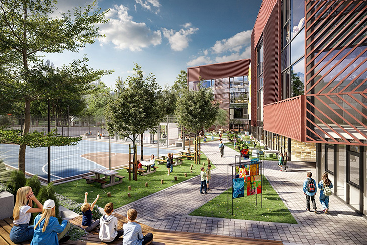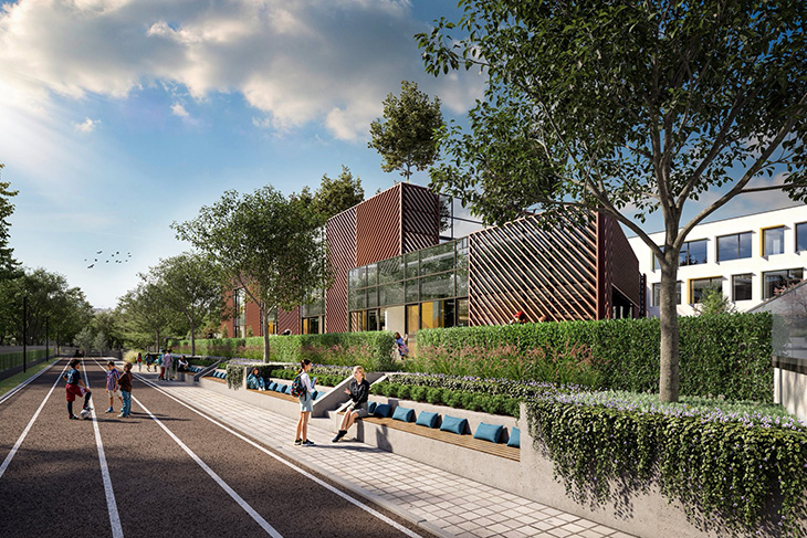 Училището ще разполага със спортни площадки на открито, писта за бягане, физкултурен салон и 25-метров плувен басейн. Те ще бъдат отворени за жителите на квартала в извънучебно време.