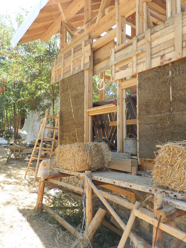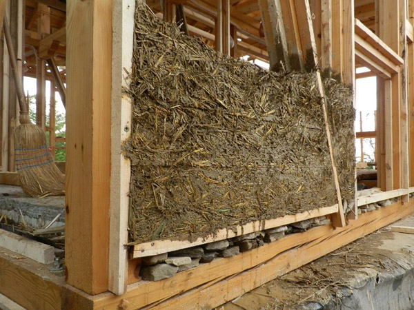 Изграждане на стени от коб, лека глина и сламени бали