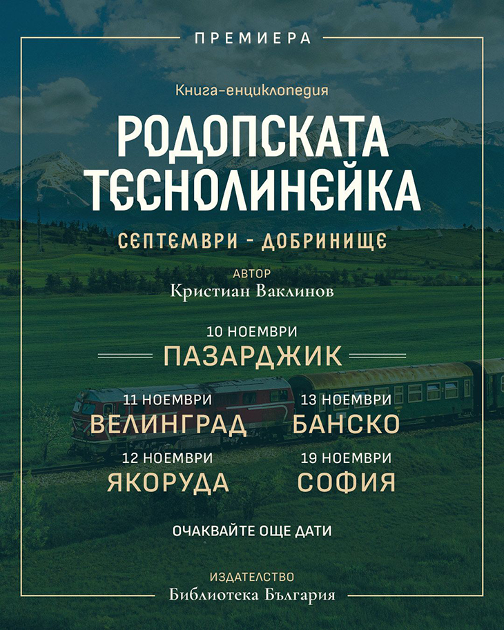 В средата на миналия месец излезе книга-енциклопедия, посветена на теснолинейката Септември - Добринище. Тя съдържа 364 гланцирани цветни страници с история и снимки, неразказани истории и подробности от 110-годишната история на железопътната линия. Автор е Кристиан Ваклинов - създател и двигател на инициативата „Родопската теснолинейка“, а нейното съставяне му отнема над 10 години.
