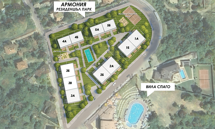 Armonia Residential Park на инвеститора Arteimmo се намира близо до популярния басейн „Спаго“