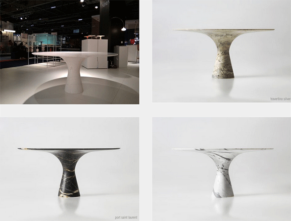 Тази маса от Alinea Design Objects е напълно подходяща в жилищна, търговска или офис среда. Изработена е от естествен камък, подходящ за външна употреба. Конусовидната основа изглежда масивна и лека едновременно.