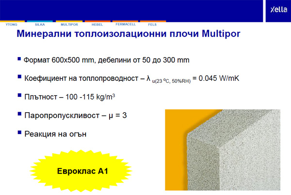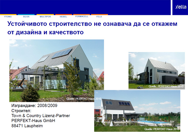 В презентацията "Устойчиви материали за устойчиво строителство - от теорията към практиката" инж. Пенев отбеляза, че устойчивостта и "зеленото" мислене са запазена търговска марка на Xella, а Ytong е първият в света строителен материал, получил преди 90 години свое собствено име, което е запазил и до днес. Ytong е създаден, за да пести суровини, енергия и човешки труд. Той е продукт с много голяма дълготрайност и с отлични топлоизолационни и пожарозащитни свойства.