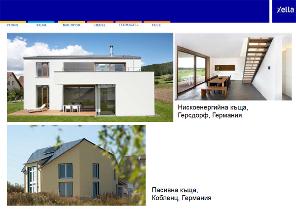 Ключът към успеха е устойчивост в иновациите. Разчитайки на дългогодишния си опит в технологичното развитие, Xella поставя ударение върху няколко основни направления, в които е натрупала и усъвършенствала професионалната си компетентност: енергийна ефективност, пожарозащита и шумоизолация.
