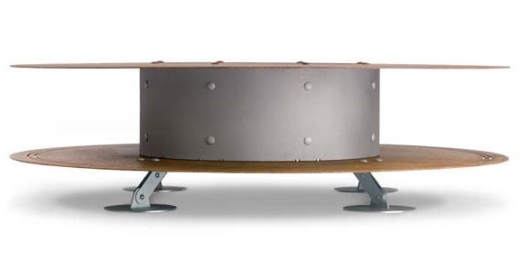 Изработено е от дърво, а в средата има гнездо, където се поставя метално огнище. Целта на Zero е да обединява - за това и формата му е кръгла. В комплект е с някои аксесоари: скара - за вкусна вечеря и капак - за плътно затваряне, когато не се използва. Структурата на камината е направена от два диска, между които могат да се подредят и дървата за огрев. Така изглежда много красива и завършена. Лесна е за монтаж и е чудесно място за сбирки с приятелите и семейството. Невероятен, съвременен начин да се създаде уют и да се релаксира приятно край огъня.