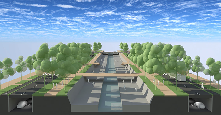 Проектът на Спаси София за т.нар. „Северен обход на центъра“ предвижда транзитното движение да бъде изведено под земята, както това беше направено при Лъвов мост, а на повърхността да останат локалният трафик и градският транспорт. „По този начин ще има истински достъпен линеен парк, а не тясна зелена ивица с няколко дървета между автомобилни платна. Линеен парк означава място за отдих, спорт, култура и обществени събития, в което реката заеме централно място и това е несъвместимо с шестлентов булевард”, допълниха от местната организация на партията в район „Възраждане“.