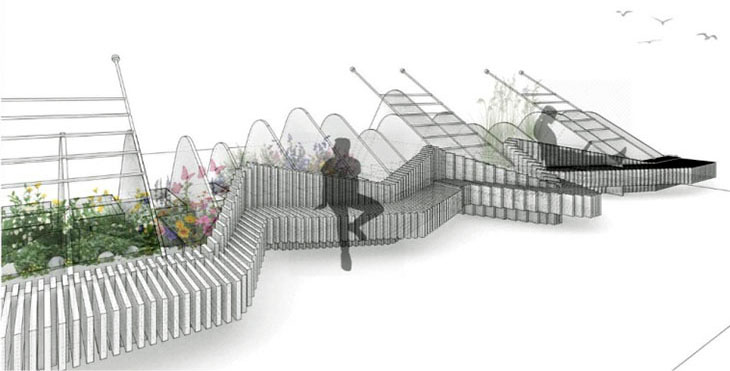 Модулна трансформираща се градска мебел с вълнообразни "дюни" ще бъде монтирана на терасите на обновената "Младост" в Бургас