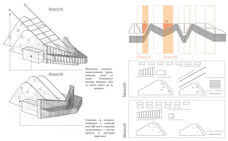 Проектът развива модулна система с различни функционални направления – Sport, Social, Culture, Play и Relax, позволяваща гъвкави конфигурации и разнообразни сценарии на използване.