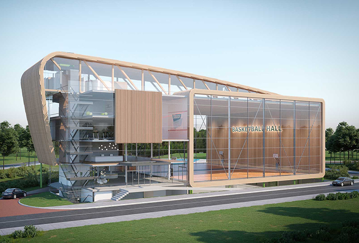 Залата на ул. „Ген. Георги Тановски“ близо до изграждаща се метростанция ще разполага с две паралелно разположени баскетболни игрища, които могат да се трансформират за волейбол, бадминтон, тенис и други спортове. В комплекса са предвидени още специализирани зали за бокс, борба, йога, пилатес, модерна фитнес зона и четири игрища за скуош. Всички съоръжения ще бъдат обслужвани от висок клас съблекални и обслужващи помещения. В пряка връзка с основната зала са предвидени няколко игрища на открито – основно за тренировки по баскетбол, волейбол и други, както и второ – за футбол. Едно от външните игрища ще е със свободен достъп за тренировки на живущи в квартала деца и възрастни. На територията на комплекса ще бъде изградена и Академия за развитие на спортните умения на деца и ученици.