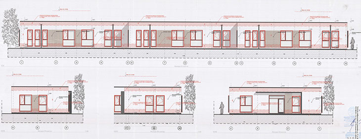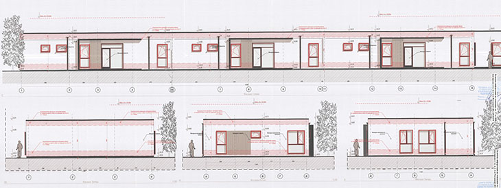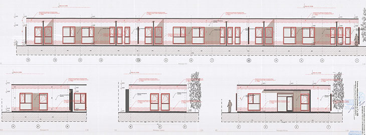 Проектант в част „Архитектура“ е София Радулова. Комплексът от сгради е съставен от три типови комплекса - А, Б и В. Те са проектирани да функционират като две отделни функционални групи – първата състояща се от три сгради на сключено застрояване за резидентна грижа за пълнолетни лица с физически увреждания, а втората функционална група се състои от една допълнителна административно-обслужваща сграда, разположена също на сключено застрояване спрямо първата функционална група. В административната зона и зоната на специализирана подкрепа се разполагат стаи за потребители, кабинети за административно обслужване и санитарно-битови и обслужващи зони и помещения. Сградите разполагат с три спални помещения, обща дневна, в която е обособен кът за индивидуални и колективни занимания, за готвене и хранене. Всеки индивидуален обект е снабден и с перално и гладачно помещение. Отделните групи са свързани посредством външното прилежащо дворно пространство и прилежащата алейна мрежа.