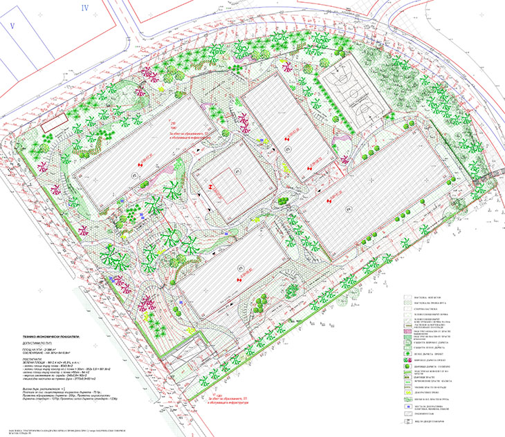 Отделните тела ще са свързани помежду си чрез общо подземно ниво. Тяло П1 се състои от две надземни нива и едно ниво сутерен, тела П2, П3 и П5 се състоят от четири надземни нива и едно ниво сутерен, а тяло П4 се състои от четири надземни нива, едно ниво сутерен, както и покривна тераса, която ще бъде използвана като открита тераса за спорт.