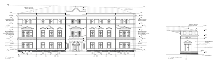 По време на ремонта ще са необходими дейности по покрива, места около оберлихтите, гръмоотводите, пилона за национален флаг, улуците и други. Ще се работи по фасадните мазилки, облицовки и декоративни елементи. С изключение на герба, дограмата, мазилките и завършващото боядисване по фасадите всички останали фасадни архитектурно-художествени елементи могат да се считат за автентични, тъй като изброените ремонти по тях са били частични и не са променили нито формата, нито материала на отделните елементи.