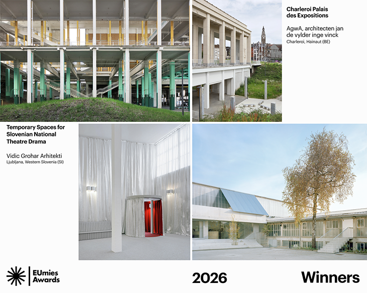 Победителят в категория „Изгряваща архитектура“ за 2026 г. е проектът Temporary Spaces for Slovenian National Theatre Drama в Любляна в Словения на Vidic Grohar Arhitekti.