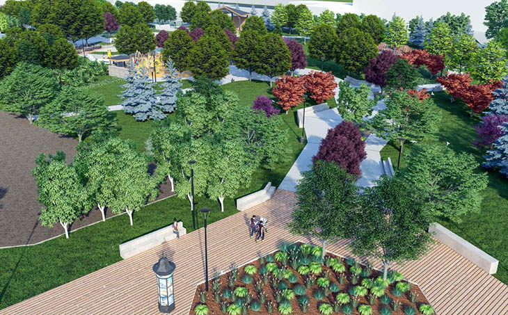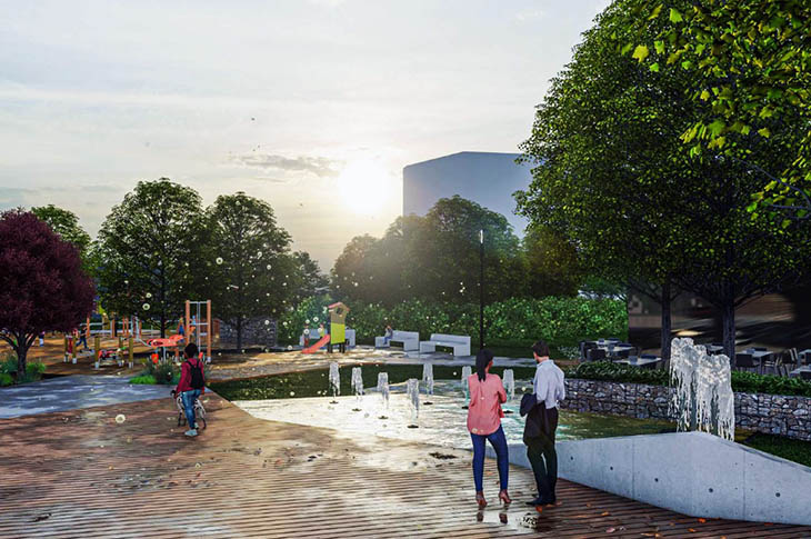 Идеята е създаване на общо място за комбинирана детска площадка за различни възрастови групи, фитнес площадка, пъмп-трак съоръжение, зона за събития с покрита сцена, алейна мрежа, парково обзавеждане, осветление и видеонаблюдение, сух фонтан, места за кафе и отдих, специален кът за тихи игри. Проектант е ДММ Дизайн.
