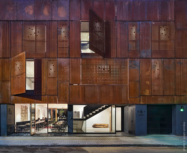 Сградата с фасада от патинирана стомана до Женския пазар в столицата - DOT Sofia, е една от номинациите. Това е запомняща се комбинация от архитектура, дизайн и артистичен дух, която предлага настаняване, кулинария и събития. Проектанти на сградата са I/O architects, които казват: „Разположена в сложния контекст на най-големия уличен пазар в София, простата двуобемна структура на сградата на DOT Sofia проявява неочаквано различни лица и мащаби от възможните гледни точки. Хибридната функция от преплетени пространства за съвременно изкуство и събития, ресторант за авторска кухня и бутикови апартаменти e инжектиранa в по-скоро занемареното историческо сърце на града с ясната амбиция да дадат нова посока на неизбежната му трансформация.“