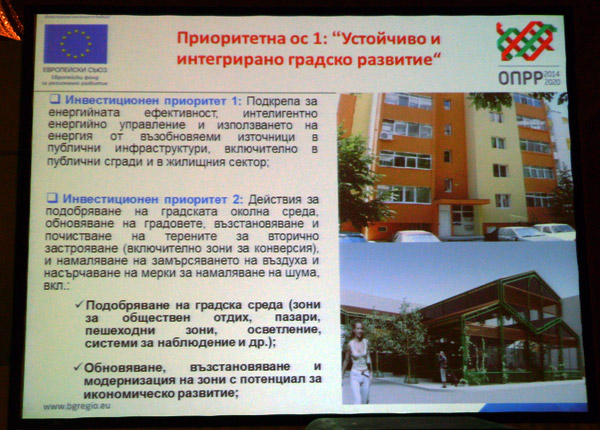 Проекти, възможности и проблеми представиха Надя Данкинова, изпълнителен директор на Фонда за устойчиво градско развитие на София, и Мартин Заимов, изпълнителен директор на Регионалния фонд за градско развитие.