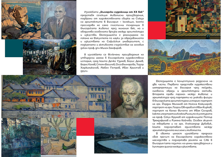 Официалното откриване на изложбата "Български художници от XX век от сбирката на Съюза на архитектите в България" ще се състои на 13 януари от 18:00 ч. в галерия „Алма Матер“, разположена в Северното крило на Софийския университет „Св. Климент Охридски“. Изложбата представя подбрани произведения от колекцията на САБ и може да бъде разгледана до 30 януари.