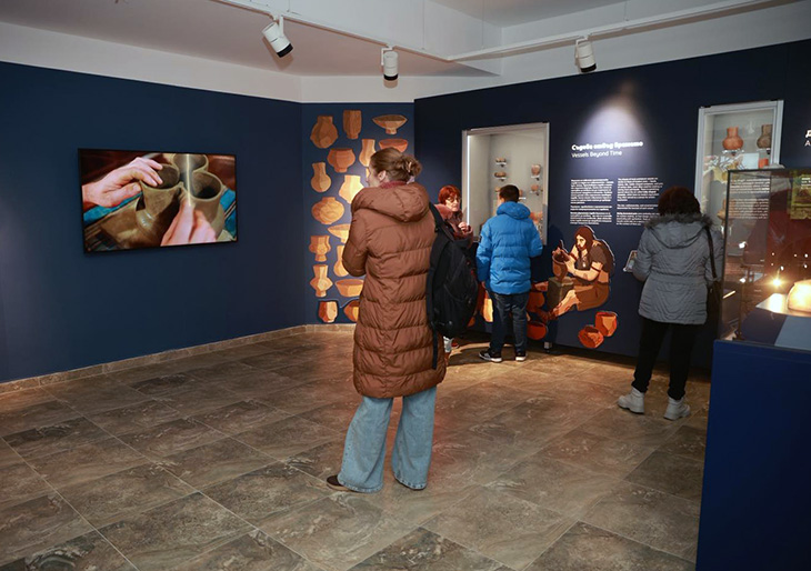 В обновената археологическа експозиция са поместени информационни табла с цветни изображения, които разказват за живота на местните хора преди повече от 7 000 години. Таблата показват поминъка на хората по това време, начина им на живот и техните къщи. Изложени са също така реставрирани и украсени керамични съдове от този период, като и различни оръдия на труда.