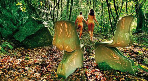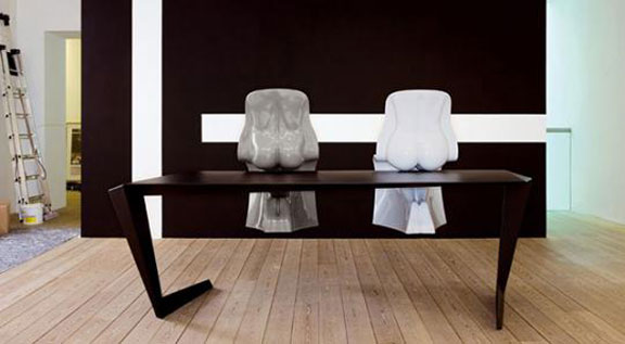Представяме ви столовете Him& Her. Уместно кръстен на нея и него, този стол е с изящни човешки форми, предполагащи съблазън, голота и похот, но без да усещат срам...Те са наивна симбиоза между мъжът и жената, безконфликтното начало на любовните отношения и копнежът да кажем „на" на суетата...Предлагат се в топли нюанси на червено, оранжево, жълто, зелено, синьо лилаво, черно, бяло, кафяво, сиво и дори прозрачни.