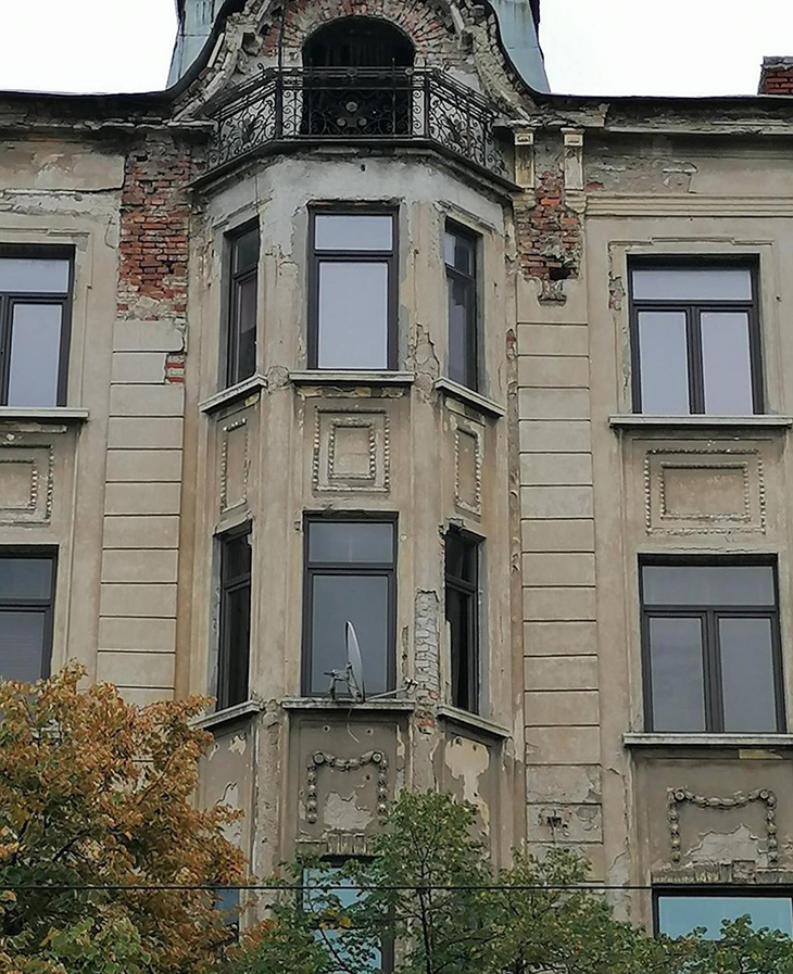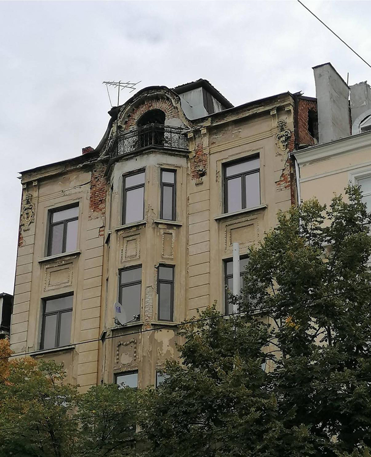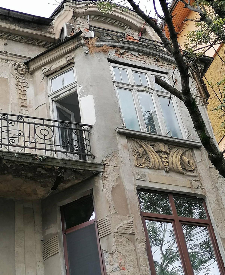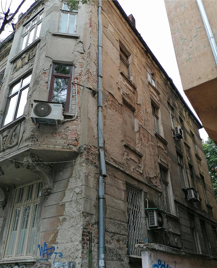 Едната сграда се намира на бул. „Стефан Стамболов“ 12. Това е сграда от 20-те години на XX век, обявена за единична недвижима културна ценност, част от зоната на старите пазарища. Състоянието й е критично: разрушени са декоративни елементи, компрометирани са фасади и балкони, има течащ покрив, ерозирали стълбищни клетки. Предвижда се пълно възстановяване на фасадите, покрива, входа и балконите, със запазване на всеки декоративен детайл.