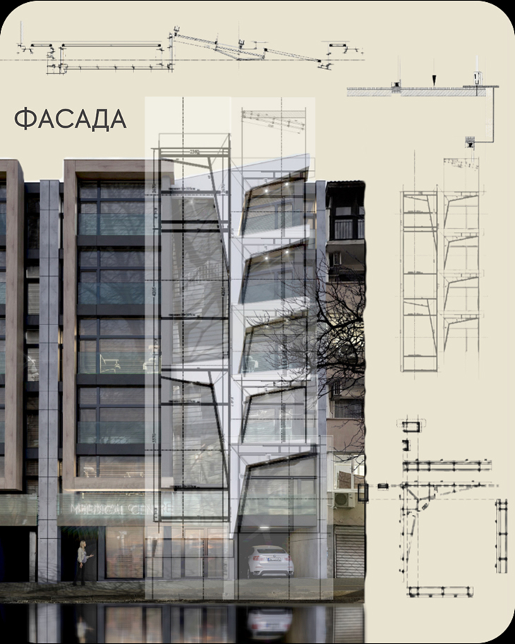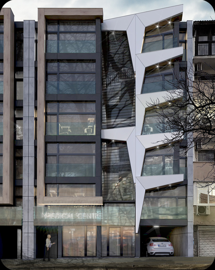 Жилищната сграда с медицински център е разположена в район "Одесос" във Варна. Сградата е проектирана с модерен архитектурен облик, който контрастира със съществуващите сгради и показва нова посока на развитие. Дизайнът търси усещане за модернизъм, съчетано с високо ниво на енергийна ефективност. Архитектурният облик се постига чрез комбинация от вентилирани фасади и неутрални цветови комбинации.