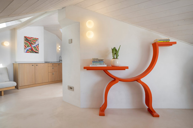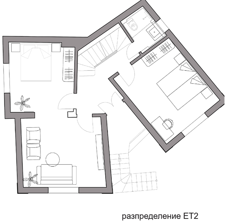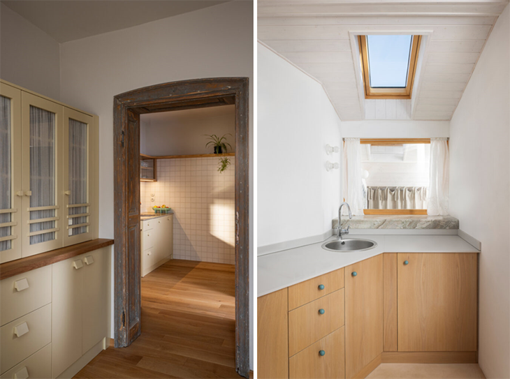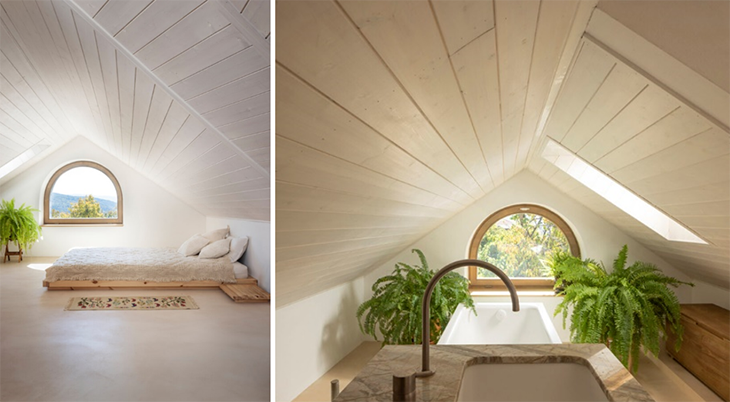 Последният трети етаж може да бъде функционално отделно жилище с обособено творческо и работно ателие, като тъмните тавански пространства са преустроени в апартамент с просторна баня. От спалнята или ваната се разкрива далечен хоризонт към билото на Стара планина. Прозоречните табакери са композирани така, че да може да се виждат изгревите и залези над долината на река Янтра, а всички пространства на къщата са естествено ослънчени.