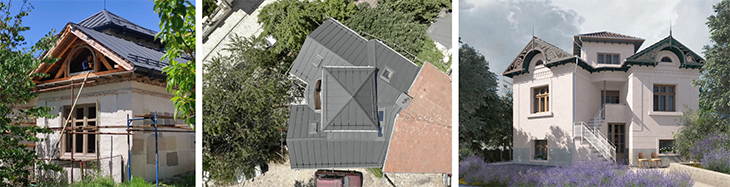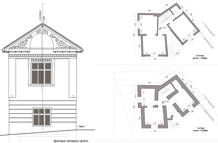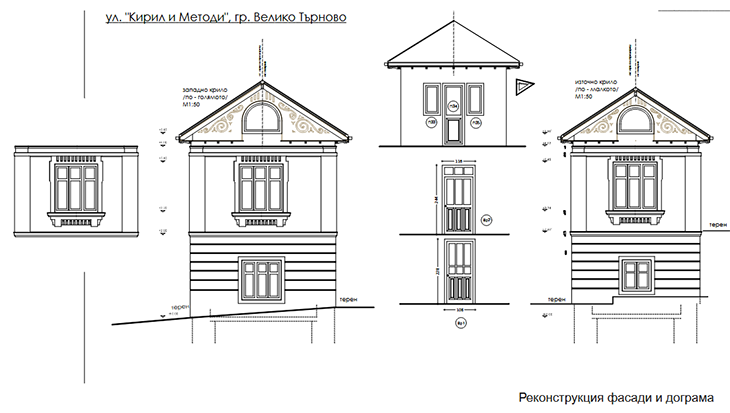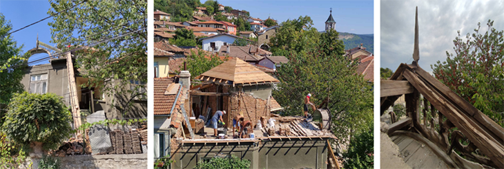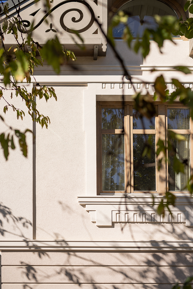 Ребрата по стрехите са почистени и консервирани, а резбованите дървени фронтони - репродуцирани. Предвидено е деликатно индиректно регулируемо фасадно осветление, подчертаващо вечер този най-характерен завършващ композиционен детайл.