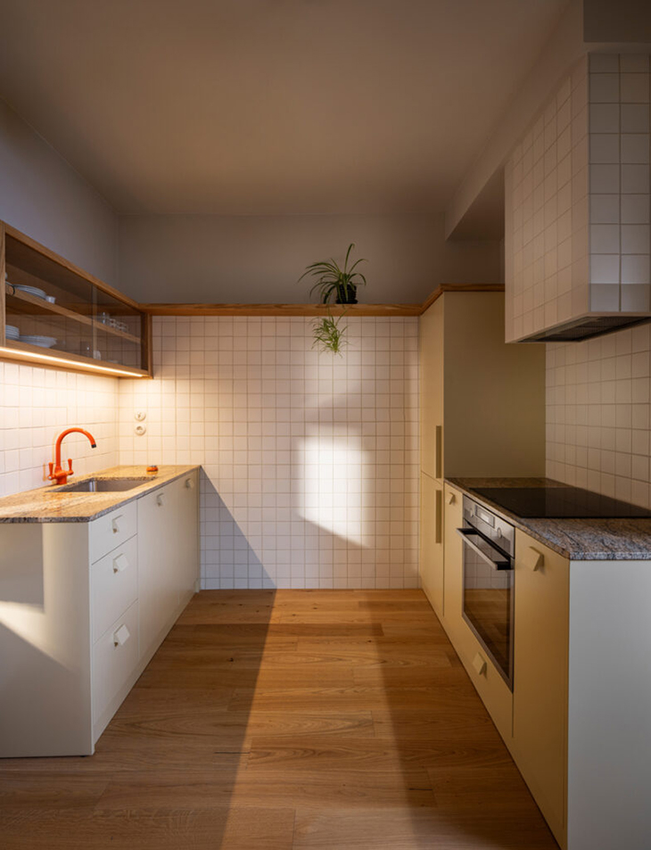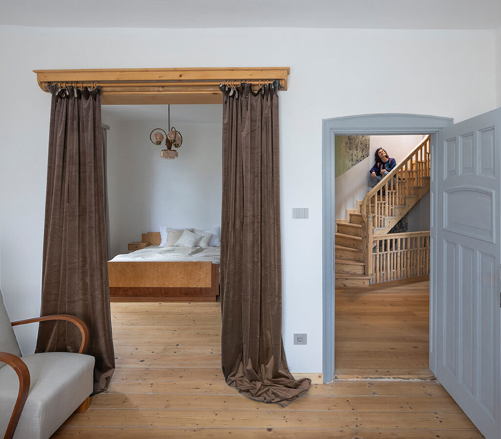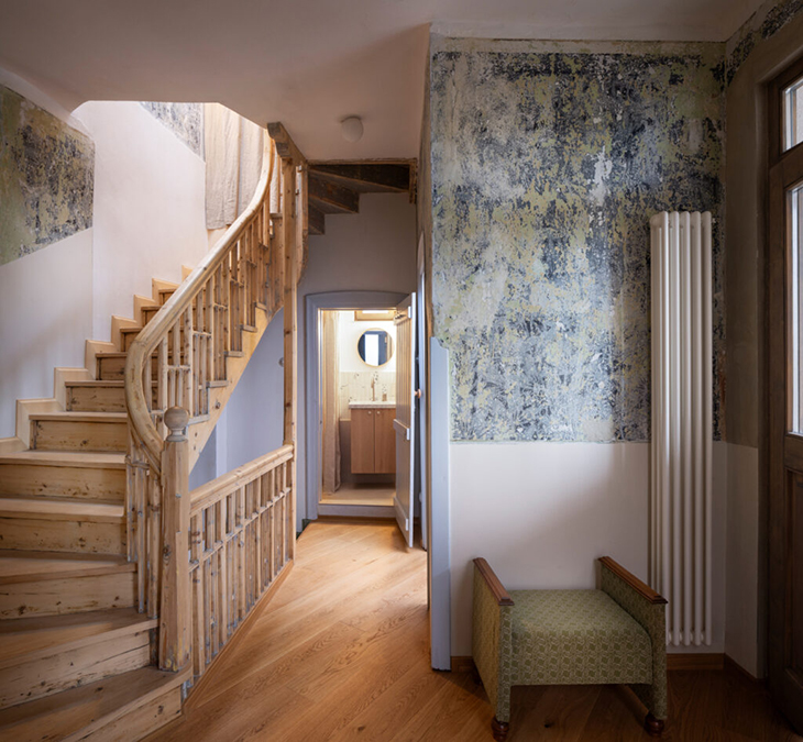 В интериора са запазени всички оригинални вътрешни врати, а почистването и реставрацията на триетажното извито дървено стълбище е самостоятелен „проект в проекта“.
