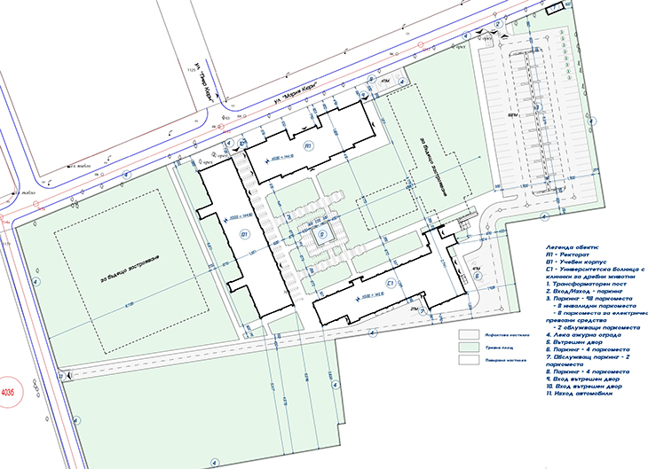 Проектанти след обществена поръчка са „Лидерппроект“ и „Писарски дизайн“. Проектът ще включва: университетска болница с клиники за дребни животни, корпус с учебни зали и кабинети, сграда на деканат към факултет по ветеринарна медицина, зони за паркиране на автомобили, както и обществени зони за отдих и зелени площи с пейки, водно огледало, архитектурен елемент тип пергола с покритие соларни панели, с които ще се обезпечи нуждата за електричество на парковата среда, архитектурното осветлени и дежурно осветлени на сградите.