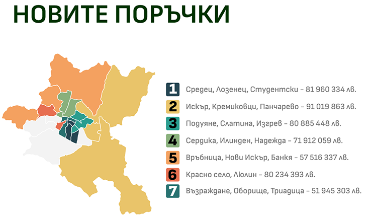 Столичната община финализира процедурите по избор на изпълнители за две от зоните на София – Зона 2 („Искър“, „Кремиковци“ и „Панчарево“) и Зона 5 (“Връбница”, “Нови Искър”, “Банкя”) - до 2031 г. Услугата ще се изпълнява при значително по-строг контрол и при цени, които защитават обществения интерес – 145,72 евро (приблизително 285 лв.) на тон за битов отпадък и 102,26 евро (около 200 лв.) на тон за едрогабаритни отпадъци, казват от Общината.