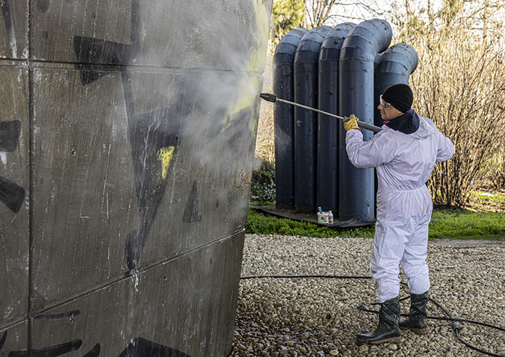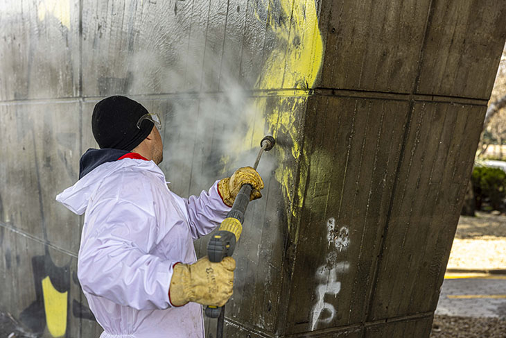 Дейностите започват от централната част на града. В момента се почистват надраскани повърхности на две ключови места – стената на парка на НДК откъм ул. „Фритьоф Нансен“, подлезът и колоните под моста на „Влюбените“ и колоните на сградата на ул. ”Алабин” 54. Премахването на надписите се извършва със специализирана техника, съобразена с различните видове повърхности, като към момента се използва водоструйна техника с високо налягане. Почистването ще продължи с подходите към подлеза на ул. „Фритьоф Нансен“, както и фасади на обществени сгради, колоните по ул. „Алабин“ и ул. „Граф Игнатиев“.