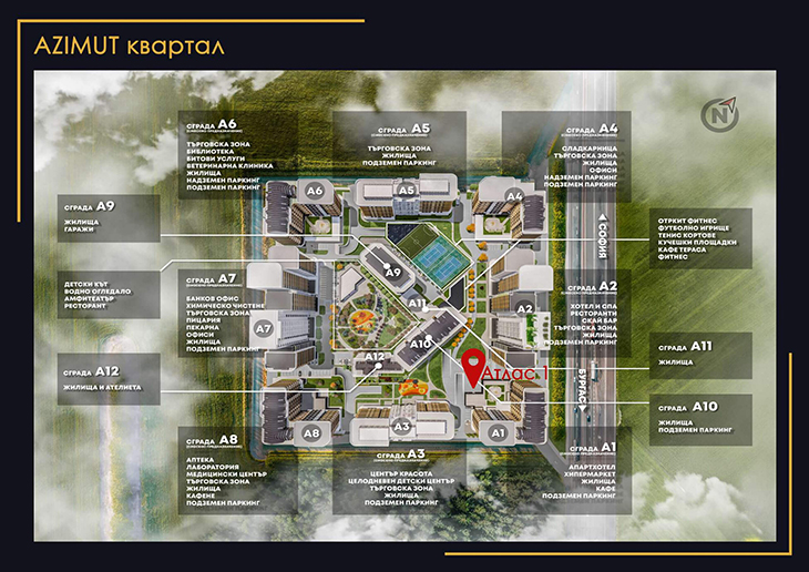 Строителните дейности на „Атлас I“ от квартал „Азимут“ в местността "Мадика" в Бургас започнаха миналата година, а стартът на „Атлас II“ беше даден на 21 май тази година. В "Атлас I" ще има студиа, двустайни, тристайни и многостайни апартаменти, супермаркет, кафене и два сутерена с подземни паркоместа и гаражи.