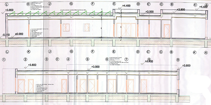 Сградата ще е изградена от стоманобетонни колони и греди-трегери. Покривърт е плосък, със стоманобетонна плоча на две нива. В някои части на сградата са нужни по-високи тавани. Покривът ще е ограден с повдигнати бордюри, като на ниските части бордюрът ще е допълнително свален, а при по-високите покриви бордовете ще са допълнително вдигнати, за да се получио разлика във височините на сградата по отношение на архитектурно-визуалното значение.