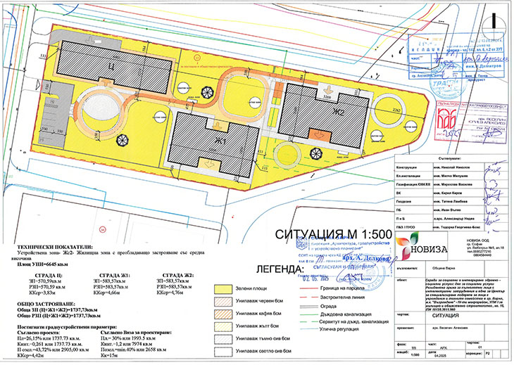 Проектното предложение предвижда ново строителство на три едноетажни сгради на терен в ж.к. „Възраждане” в имот с идентификатор 10135.3511.560.