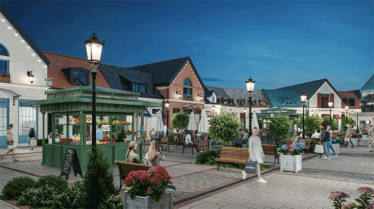 Проектанти са Atelier Serafimov Architects, като дизайнът е вдъхновен от френската архитектура от 16 век. Като част от тази концепция са предвидени часовникова кула и порта, които не само да ориентират клиентите в селището, но и да служат като символи и акцент в силуета на града, казват инвеститорите. "С дългогодишен опит в проектирането на мащабни търговски пространства, реализирахме един от най-мащабните ритейл комплекси в България – XO Park Sofia с над 55,000 м² търговски площи и предстоящо разширение до 156,000 м². През 2026 в рамките на проекта ще отвори врати и първият у нас Outlet Village", коментират и проектантите.