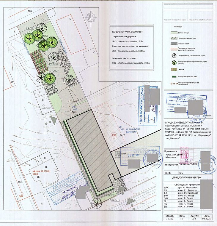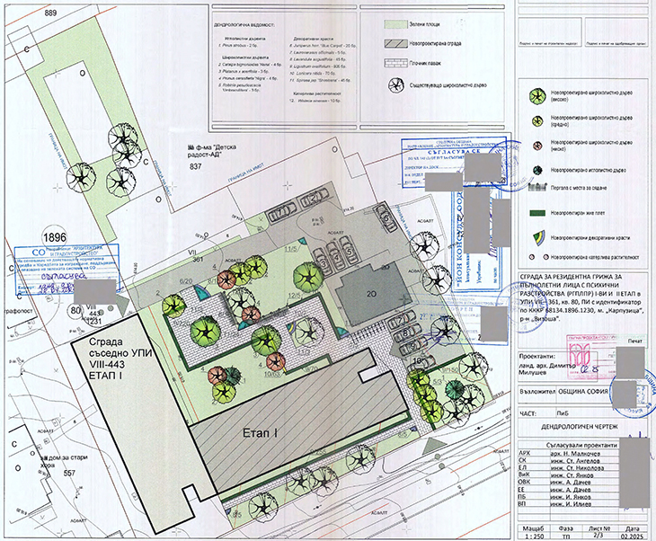 Настоящата разработка е за изпълнение на ЕТАП 1 (застрояването за ЕТАП 2 ще се реализира по друга проектна разработка). Проектант в част „Архитектура“ е арх. Никола Малкочев. В част „Паркоустройство и благоустройство“ проектант е ланд. арх. Димитър Милушев.