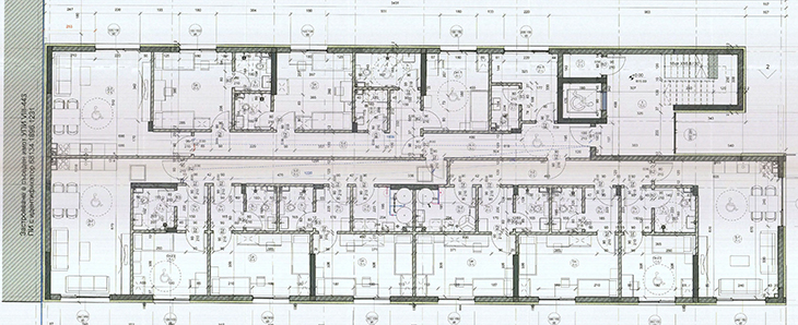 На първия етаж ще има двураменно стълбище с асансьор, входно пространство/фоайе, шест двойни стаи, три единични стаи (всяка една от които е със самостоятелен санитарен възел), дневна с кухненски бокс и трапезария, две перални помещения, помещение за персонал и склад. На втори и трети етаж разпределението е типово като това на първия етаж.