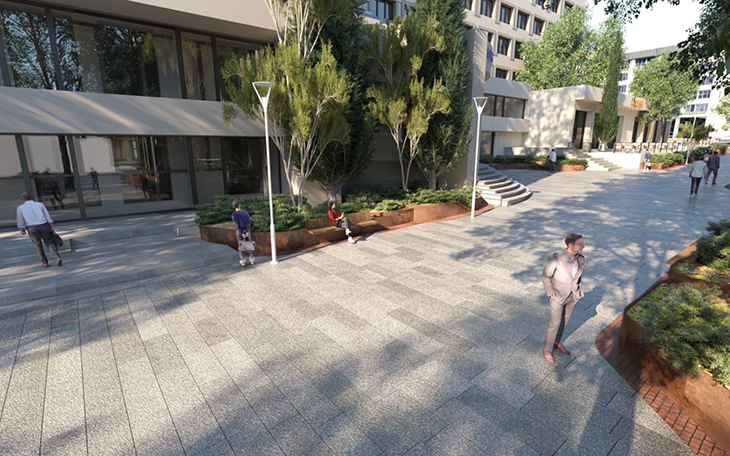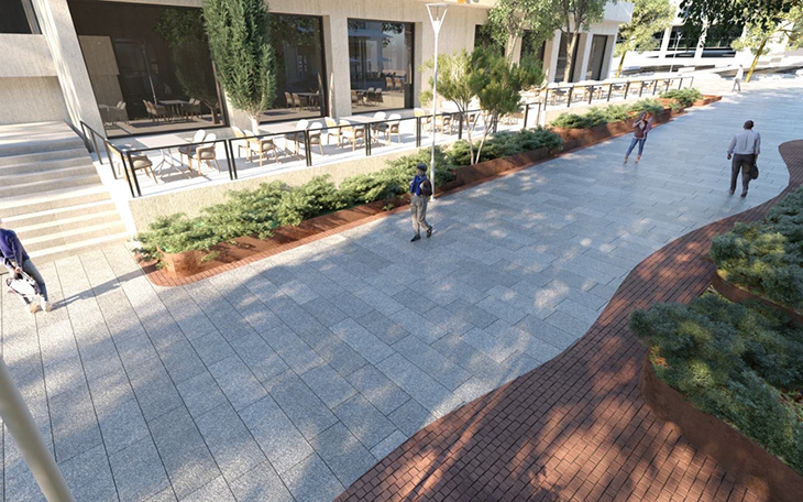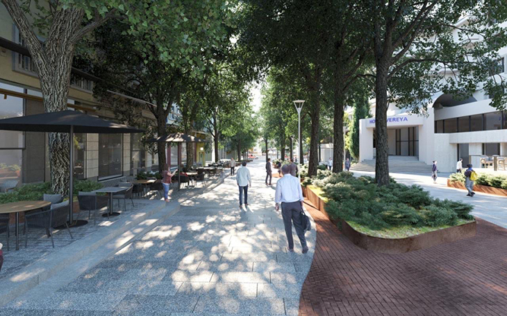 Проектът включва подмяна на настилката, изработване на нови кашпи с озеленяване и цялостно променен дизайн на пространството.