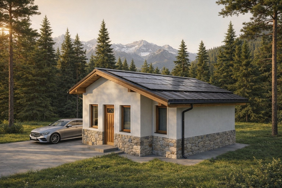 Този проект носи духа на планинското шале — уютен, топъл и с характер, който те кара да се почувстваш у дома още от първия поглед. Компактен по размер, но безкомпромисен по качество, той е замислен за тези, които ценят простотата и близостта до природата.
